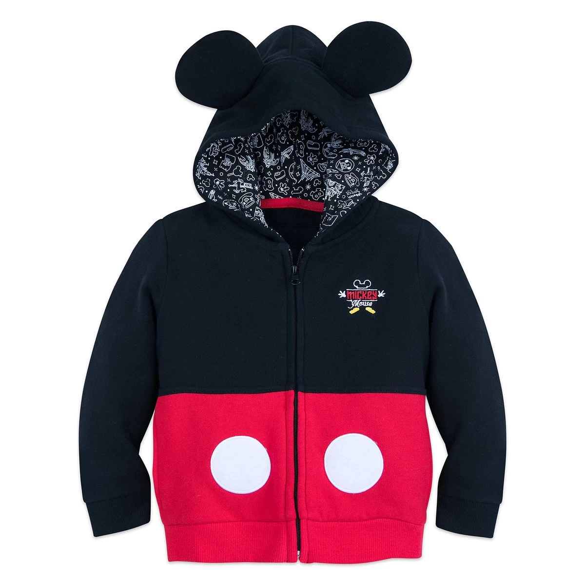- Zip-up hooded sweatshirt designed to look like Mickey costume