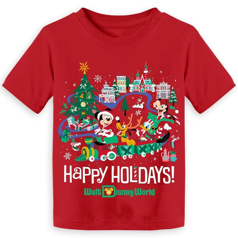 Celebrate the happiest of holidays in this bright cotton tee as Santa Mickey and the gang deliver a season of fun directly from Walt Disney World Resort.