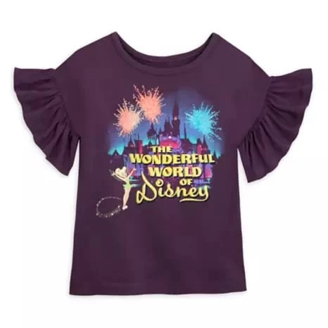 There is beauty untold that is yours to behold in this Wonderful World of Disney top with dropped shoulders, ruffled sleeves, puffy embroidered logo and glittering accents. Tinker Bell hosts a fashion show that is guaranteed to set off fireworks!