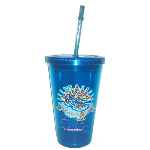 Relive the mouth-watering excitement of a race to Walt Disney World with this blue plastic RunDisney Princess 1/2 Marathon Tumbler With Straw. With RunDisney on the back of the cup and a Princess 1/2 Marathon icon on the front, this cup is sure to quench your thirst for Disney. Join the fun while drinking on the go! The cool design looks just like a fast food drink cup but made from heavy-duty reusable acrylic!