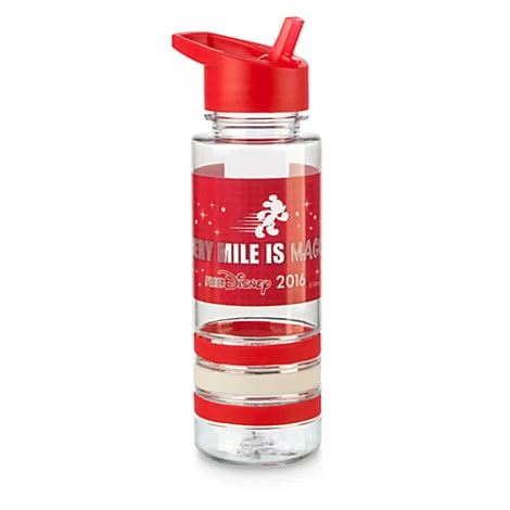 Every mile is magic when you are properly rehydrated from the runDisney 2016 Water Bottle, featuring twist-top cap, pop-up sipper lip, carry handle, grip rings, and official logo art with Mickey silhouette.