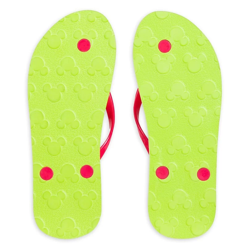 You’ll be a beachcomber wherever you go wearing these fruity flip flops in sweet neon colors. Citrus slices accent the gel strap. Look out for ”hidden Mickeys!”