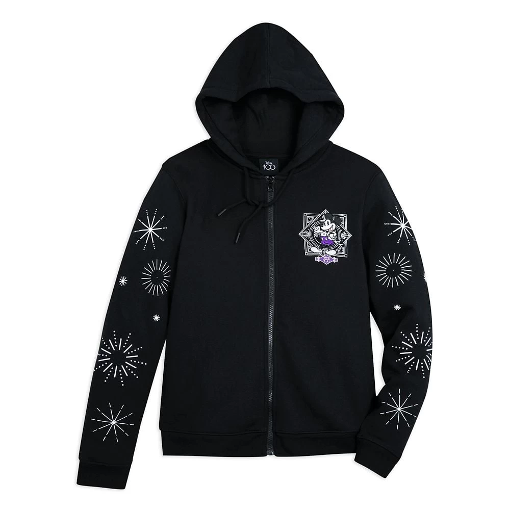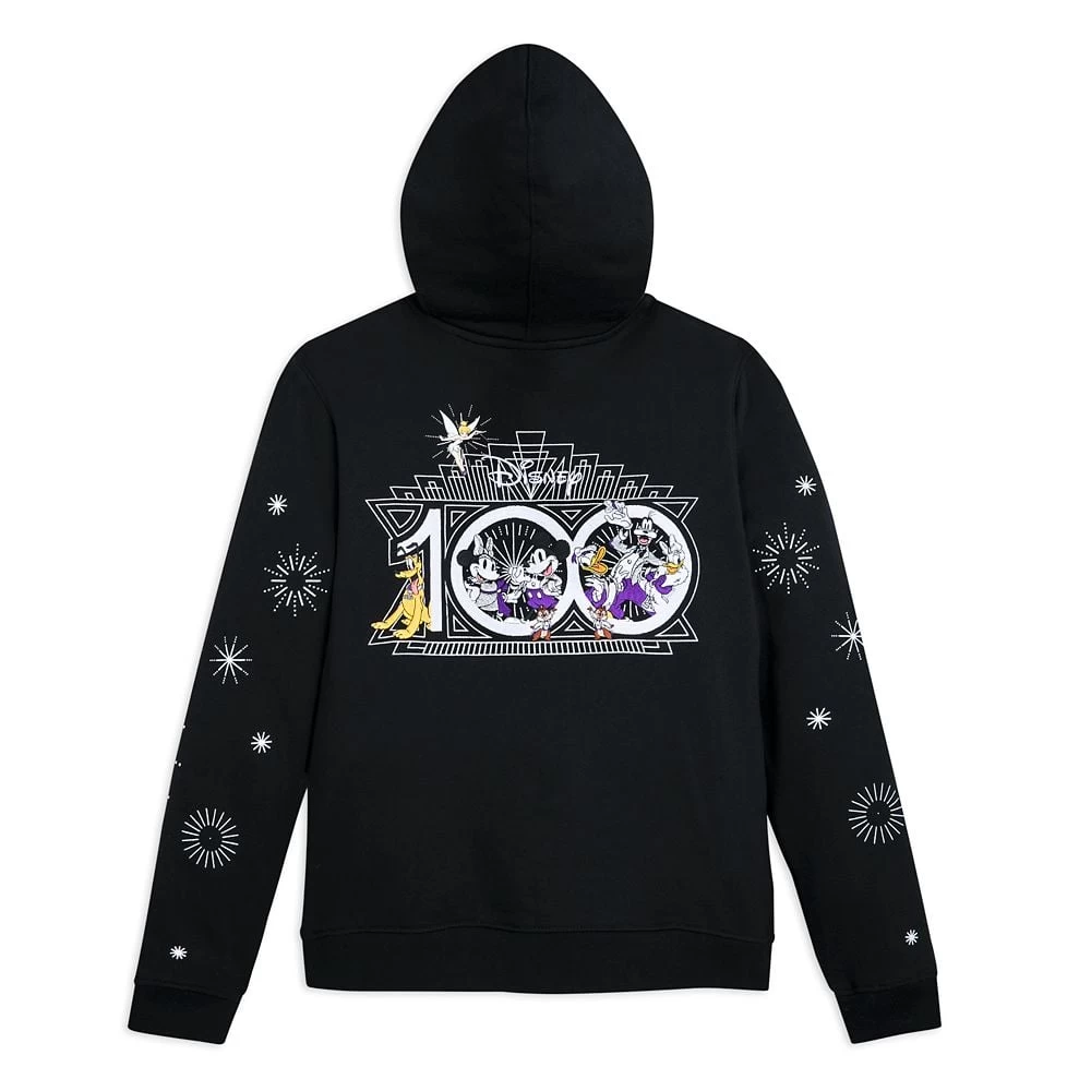 Go all out in this gorgeous Mickey Mouse Disney100 zip front hoodie. You’ll be celebrating in comfort and style thanks to super soft cotton fleece and screened and embroidered art that dazzles. Metallic foil print and black glitter embroidery set it apart as something truly special. On the back, Mickey, Minnie Mouse, Donald Duck, Daisy Duck, Goofy and Pluto are all smiles and ”Disney100” is emblazoned for all to cheer. On the front, Mickey is decked out in his finest, and the sleeves are festooned with a sparkly fireworks display.