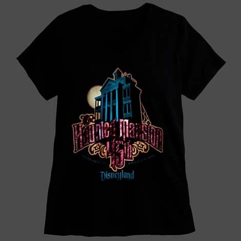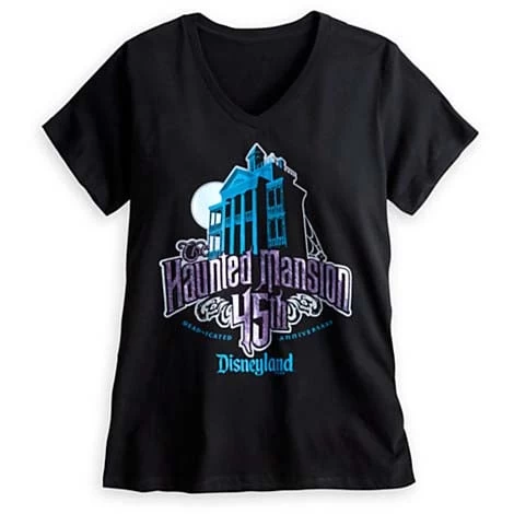Grim grinning ghosts come out to socialize for their 45th Anniversary as occupants of Disneyland’s Haunted Mansion as you wear this commemorative cotton tee available for a limited time only!
