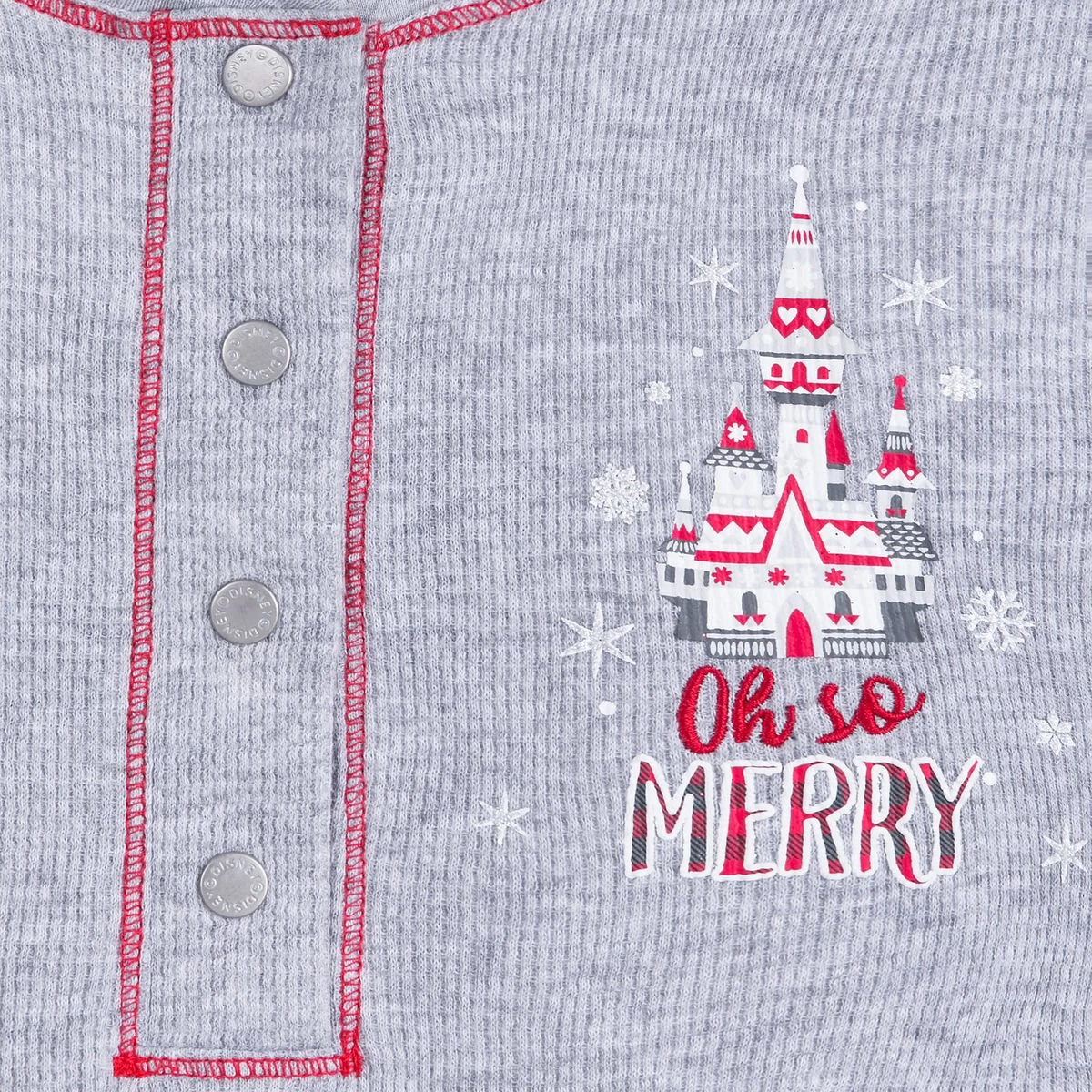 Fairytales come true in this festive holiday henley. The wintry Fantasyland Castle is sprinkled in stardust and snowflakes on a soft thermal pullover that will make a true believer out of every dreamer.