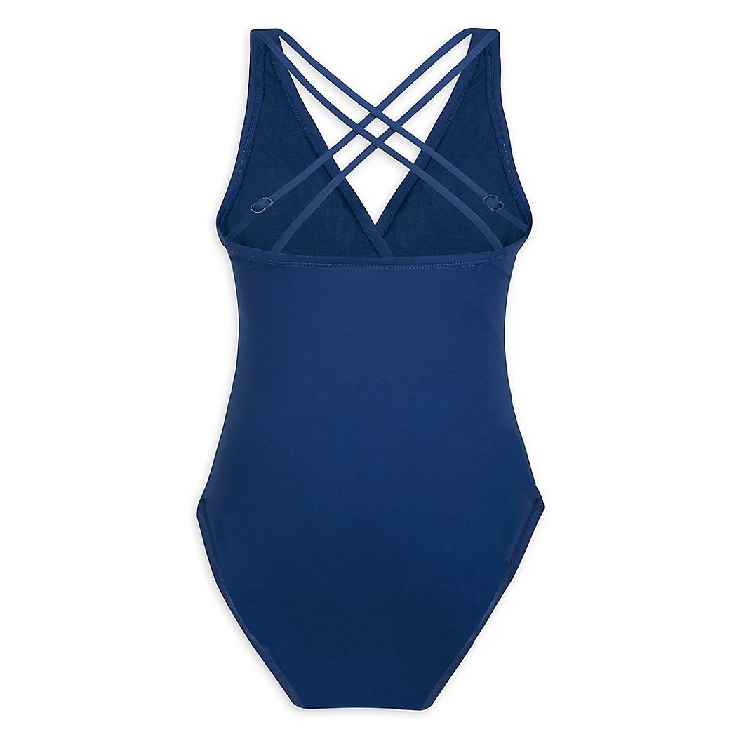 Dive into classic style with this Minnie Mouse one-piece swimsuit. Combining ruched sides with a crisscross neckline and double shoulder straps, plus subtle Minnie screen art, this suit has elegance, comfort with a dash of whimsy for playful poolside fashion.