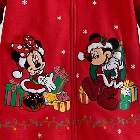 - Santa Mickey and Santa Minnie appliqués with velvet, faux fur and embroidered detailing on front