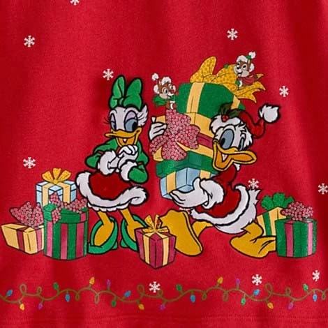 - Santa Donald and Santa Daisy Duck appliqués with velvet, faux fur and embroidered detailing on back
