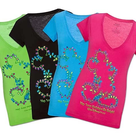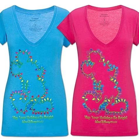 May your holidays be bright with the Christmas Lights Mickey Mouse Tee. Shimmering Christmas lights outline Mickey’s silhouette with festive charm. A deep Vee-neck and soft cotton gives this Walt Disney World Tee a modern edge.