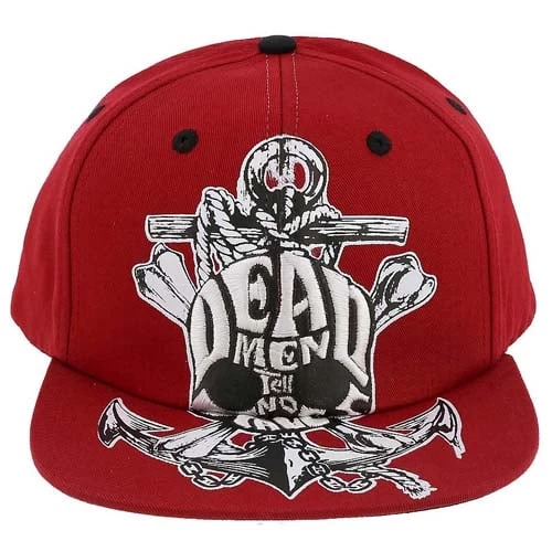 This red youth baseball hat has ”DEAD MEN Tell NO TALES!”
